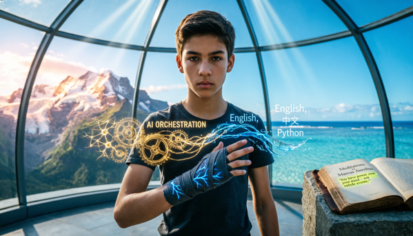 Métaphore de l’orchestrateur : celui qui ne combat pas lui-même mais organise supérieurement la bataille. Appliqué à l’IA : celui qui commande des systèmes plutôt que d’exécuter des tâches.